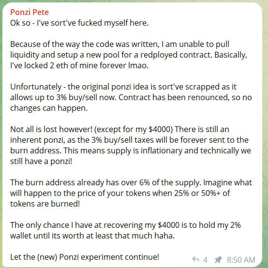 The description says "inflationary" but its "deflationary"Burn address holdings listed here:https://etherscan.io/token/0x18c0862c68e0f3bf6d4fc4da59e0a454fc7e315f?a=0x0000000000000000000000000000000000000000
